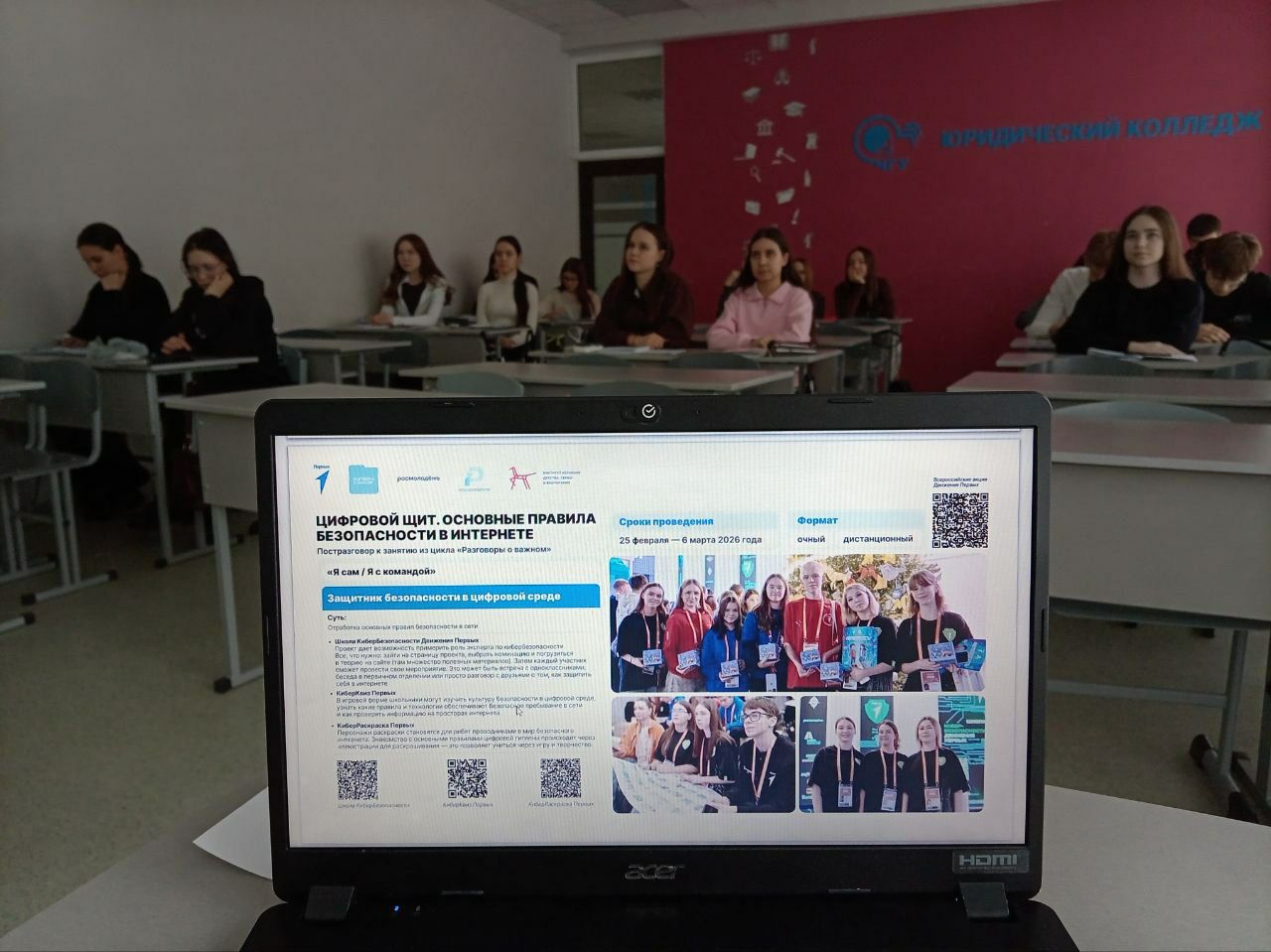 В юридическом колледже состоялось очередное мероприятие серии «Разговоры о важном», посвященное актуальной теме «Цифровой щит. Правила безопасного пребывания в Интернете». Сегодняшний мир невозможно представить без интернета, который прочно вошел в нашу учебу, общение и отдых. Но вместе с удобствами сеть несет и серьезные риски — от действий злоумышленников до проявлений кибербуллинга.