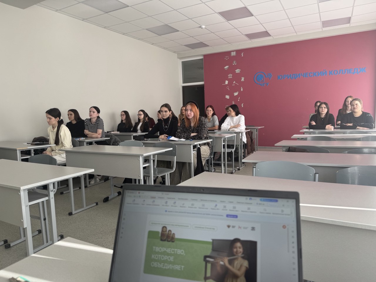 Обучающиеся юридического колледжа обсудили почему творчество помогает людям находить общий язык, как музыка и искусство соединяют разные страны и культуры и почему людям так важно иметь возможность выражать себя через творчество.