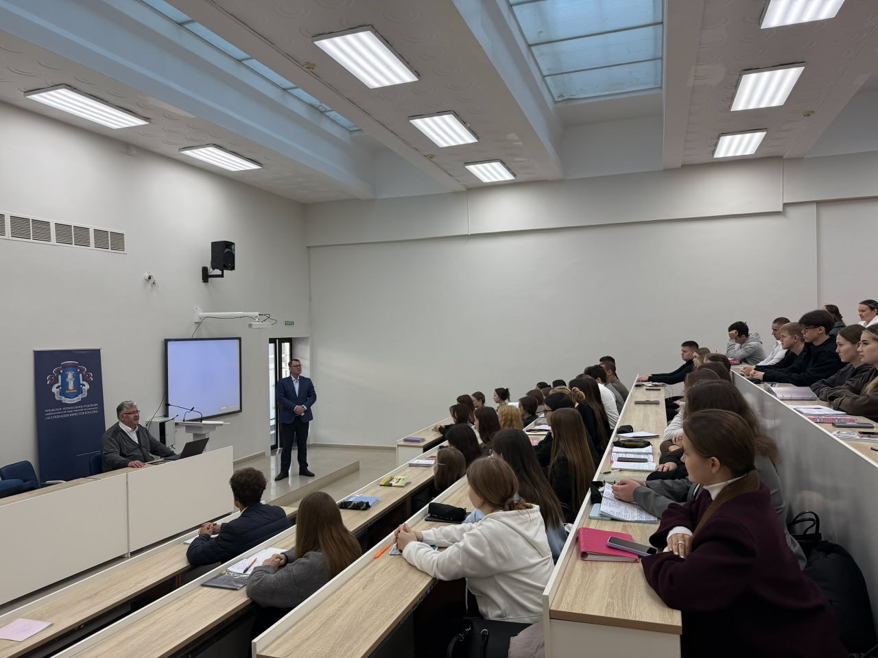 На юридическом факультете состоялись встречи студентов 1 курса с начальником управления безопасности Олегом Николаевичем Викторовым.