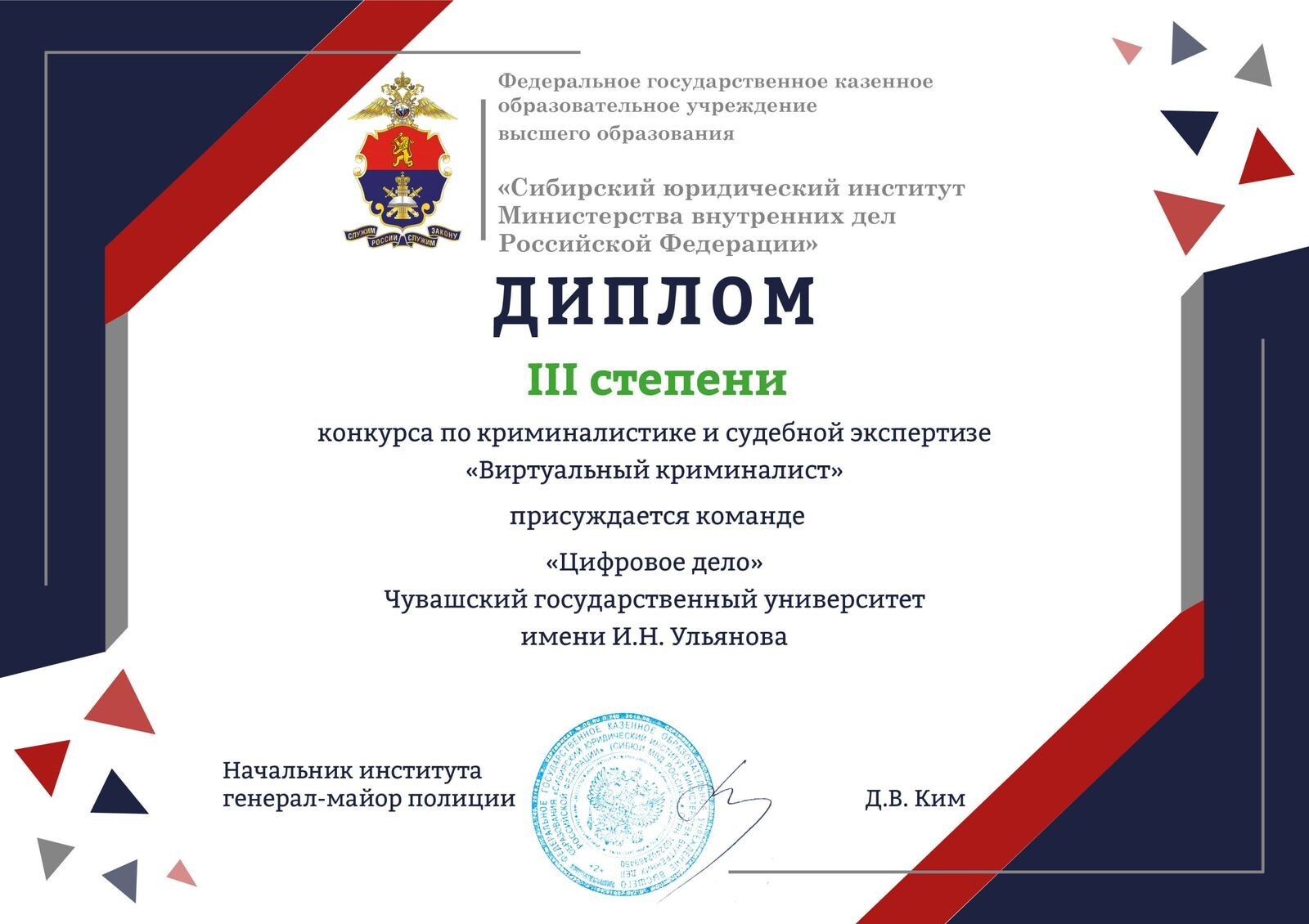 Лауреат номинации «Самый логически подкованный криминалист» «Цифровые следопыты» – МосУ МВД России имени В.Я. Кикотя;