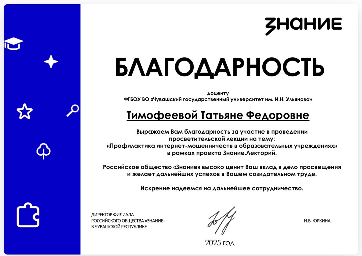 Так для обучающихся, выбравших юридический факультет ЧГУ им. И.Н. Ульянова местом своей учебы, состоялась просветительская лекция на тему: «Профилактика интернет-мошенничеств в образовательных учреждениях».